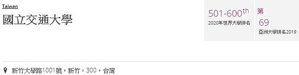 台灣入榜《QS世界大學排名》前1000名大學分別為(前者數字是2020年排名,後者則是2019年):