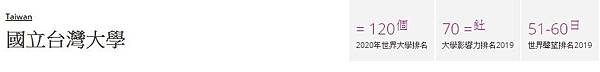 2020世界大學排名 台大躍升120名史上第二高列印