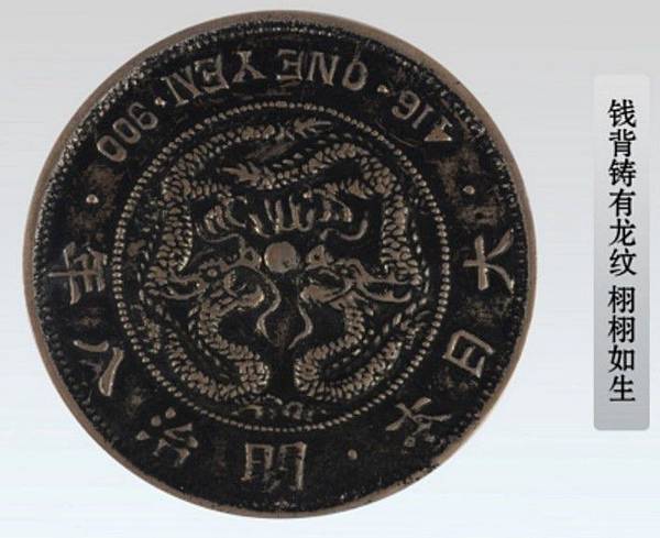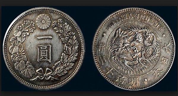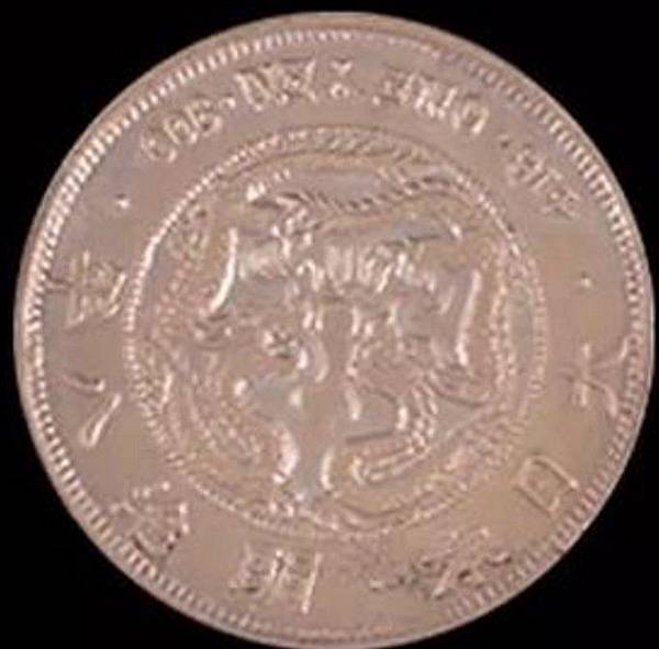 在明治八年(1876年)日本天地十萬圓(或壹萬圓),柒兩貳錢的真幣,無論是造型或設計都是世界一流的,它的設計以天地為本,內圓圈有72粒珠,中間有三粒珠,其中有粒大珠,外圓(外援)有145條內橫線,他的背面也有145條內橫線,合計365,恰巧等於一年365天,除正面有雙龍含珠奪寶珠外,他的背面也有天和地,天上有太陽光芒萬仗,低上有萬物參葉茁壯成長。