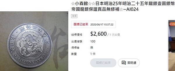 這枚日本龍銀仿幣是在網拍上買的~