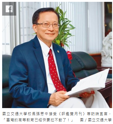 國立交通大學校長張懋中接受《評鑑雙月刊》專訪時直言,「臺灣的高等教育已經快要拉不動了!」 圖/國立交通大學提供