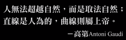 後來高第在大自然中找到屬於他的建築邏輯,曾說過:「直線屬於人類,曲線屬於上帝。」