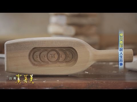 俐落的刀法,專注的神情,從小喜歡藝術的鄭永斌,國中畢業後即學習木刻技藝從事門花彫刻,因對糕餅印模彫刻產生興趣,開始投入糕餅粿模的設計製作。 粿印傳人 鄭永斌:「下去開始收舊的模具最主要的一個用意就是老一輩的刀法,我要參考他們的刀法。」