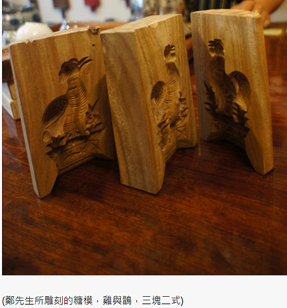 (鄭先生所雕刻的糖模,雞與鵲,三塊二式)