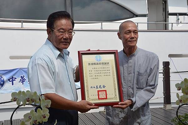 在中華彌陀淨宗學會的主法會長趙基久帶領下,王縣長、劉陳議長,以及縣府秘書長劉丁乾、局處主管登船後,一同誦讀經文,同時藉由火化龍船、蓮花、施藥供、放寶瓶等超渡供養眾生儀式,讓他們能夠乘坐著龍船及蓮花跟隨佛菩薩修行,永離無邊苦海。
