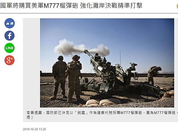 國軍將購買美軍M777榴彈砲 強化灘岸決戰精準打擊 https://goo.gl/xAwNf6