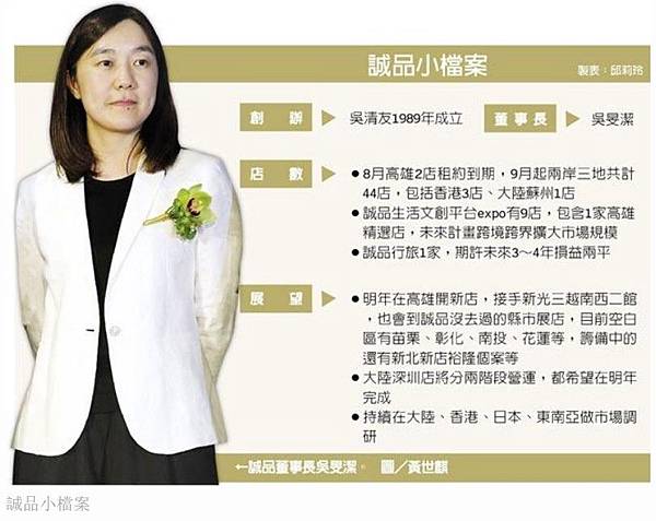 由於誠品8月在高雄有2店租約即將到期熄燈,今年在無新的展店計畫下,總計誠品在兩岸三地總店數將降至44店,包括香港3店、大陸蘇州1店,另有一家獨立的誠生文創expo精選店。至於延宕許久的上海中心店,吳旻潔說,誠品準備就緒,能否開幕需配合房東等待通知,希望是一個共好、雙贏的決定,但她也不諱言,誠品已有停損的規畫。