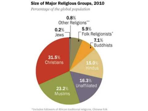按2015年人口統計,全球人口73億,基督徒佔31%、穆斯林24%、佛教7%。