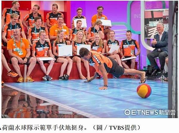 ▲荷蘭水球隊示範單手伏地挺身。(圖/TVBS提供)