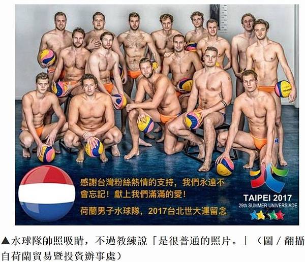 ▲水球隊帥照吸睛,不過教練說「是很普通的照片。」(圖/翻攝自荷蘭貿易暨投資辦事處)