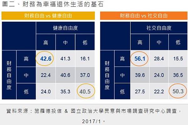 調查發現,財務自由度愈高者,健康自由度愈高;反之,財務自由度愈低者,健康自由度愈低。