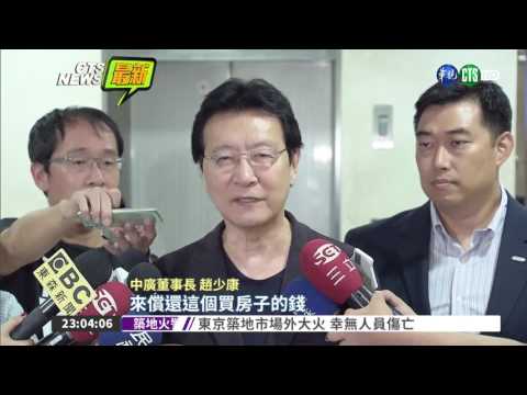 中廣董事長趙少康日前因中廣案被傳訊。針對輿論批評,他訊後忿忿不平表示「取得中廣是透過正當程序」。他並以「買房子有誰能一次付清?」來反擊對他的批評。趙先生甚至激動的說:「講些什麼話啊!共產黨啊?」
