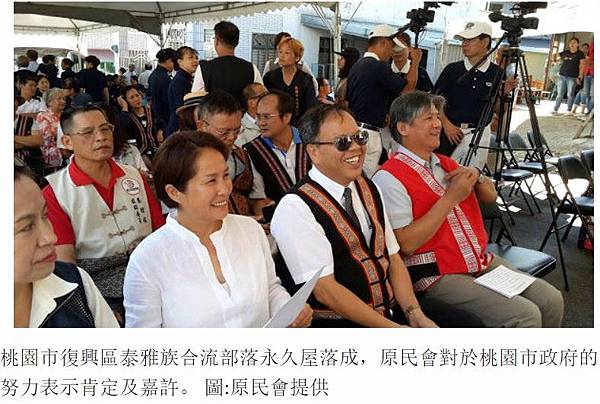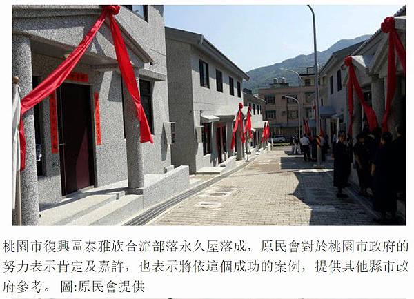 桃園市復興區泰雅族合流部落永久屋落成,原民會對於桃園市政府的努力表示肯定及嘉許,也表示將依這個成功的案例,提供其他縣市政府參考。 圖:原民會提供
