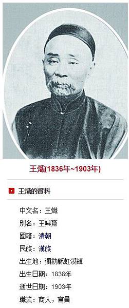 王熾(1836~1903),字興齋,男,漢族,彌勒縣虹溪人。 中國封建社會唯一的一品紅頂商人。民間稱為「錢王」