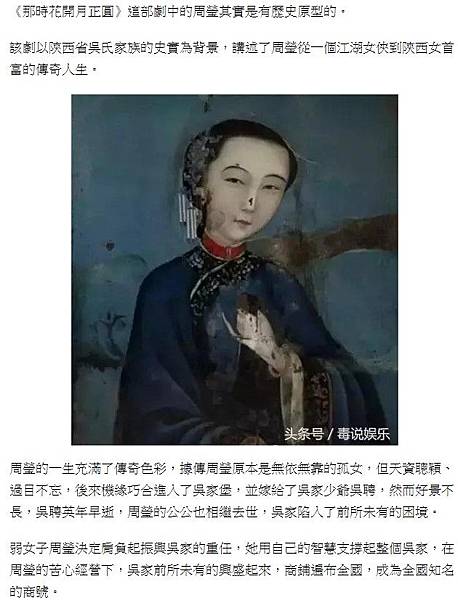 《那時花開月正圓》這部劇中的周瑩其實是有歷史原型的。