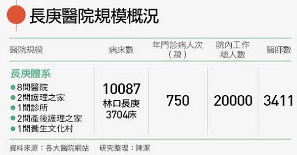 《天下》調查報導指出,長庚總床數逾1萬床、年看診量750萬人次,都是世界第一,在包括肝臟移植、整形外科等領域更,更有世界級的頂尖成就,事實上,長庚也是台灣最肯給錢讓醫生做研究的醫院;不過,長庚財報顯示,2016年稅前淨利102億元中,只有3.21億元來自醫務收入,而非醫務淨利99.4億元,其中主要來自台塑四寶的股息收入;儼然「是一個超級投資公司」。
