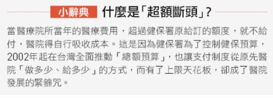 問題出在內部失衡。同樣是專科主治醫生,一個急診專科主治醫生月薪可達40、50萬,普通的內外科主治醫生可能只有20到30萬。王明鉅說,「這樣可以嗎?這已經不是錢的問題,是內部必須平衡的問題,也是管理者的問題,不能急診的收入一直上去,那其他科怎麼辦?」
