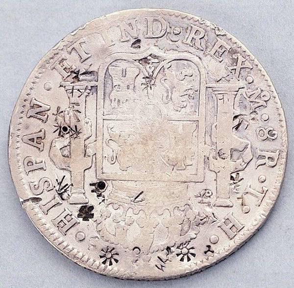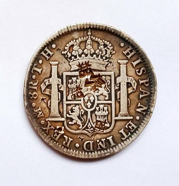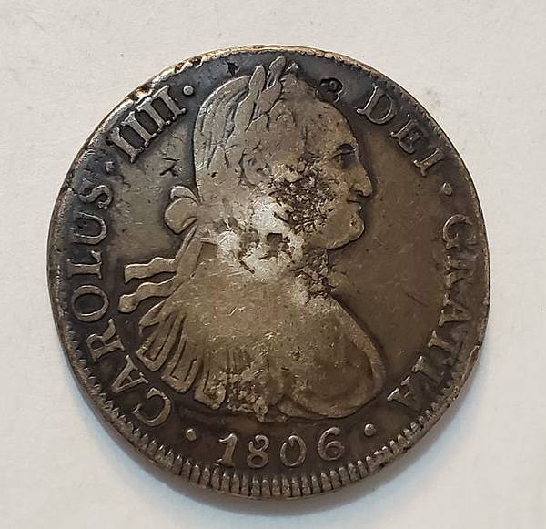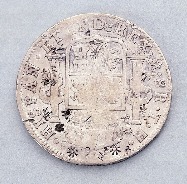 西班牙卡洛斯四世(Carlos IV,1788-1808年)時期製作的8里爾銀幣,也就是漢人說的「佛銀」。根據清朝時期目前現存的土地契約,可看到當時曾使用佛銀進行土地買賣,因此本物件亦在展場中卓猴社婦人-目加禮與漢人簽訂土地租賃契約的場景出現。