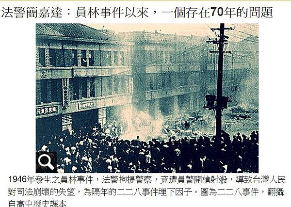 法警拘提警察,竟遭員警開槍射殺!當年的《民報》報導「員林事件」時,冠以「聳動台灣人聽聞的員林血案」。「員林事件」之所以「聳動台灣人聽聞」,主要是台灣民間於日治時期1919年司法改革後,已漸形成「司法獨立」的觀念,與民初統治台灣當局存有巨大的法治觀念落差,而「員林事件」摧毀節制行政權的最後一道司法防線,也因此在1947年2月27日「緝菸事件」發生時,台灣人民已無法相信一黨專制下的跛腳司法,還能夠實現什麼司法正義。義憤不平的群眾集結至行政長官公署前討公道,最後全面引爆成「二二八事件」。