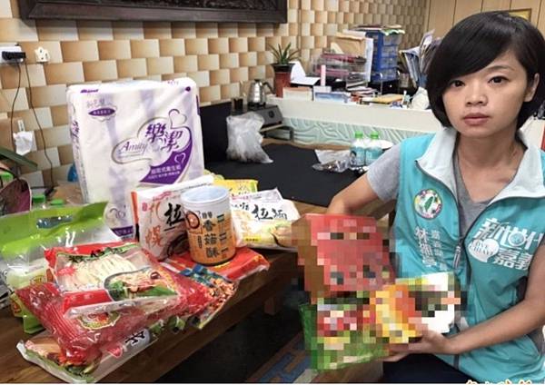 嘉義縣議員林緗亭手上拿著是阿嬤購買的保健食品,旁邊琳瑯滿目都是贈品。(資料照,記者蔡宗勳攝)