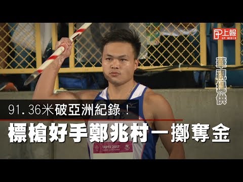 鄭兆村2017年世大運擲出91公尺36,成為亞洲紀錄保持人,也是亞洲第一位標槍擲出超過90公尺的運動員