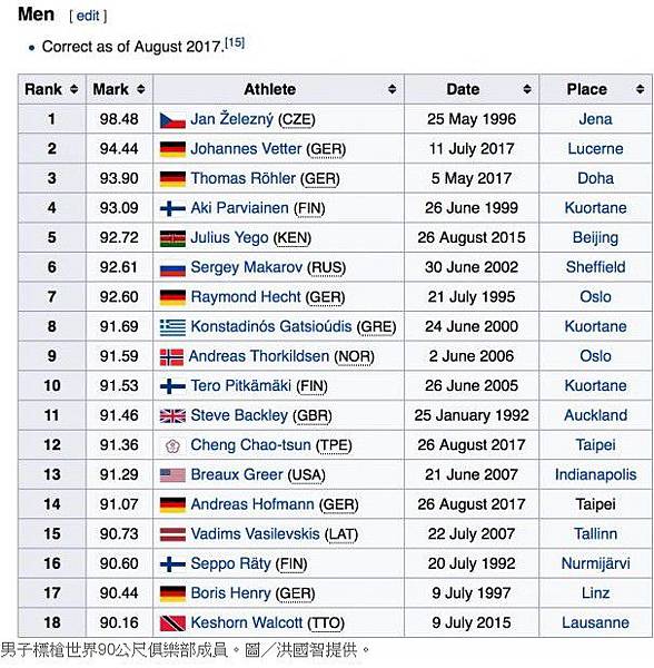 田徑》今年鏢槍世界前十名 只有鄭兆村不是德國人 - 自由體育 - https://goo.gl/pa4TM2
