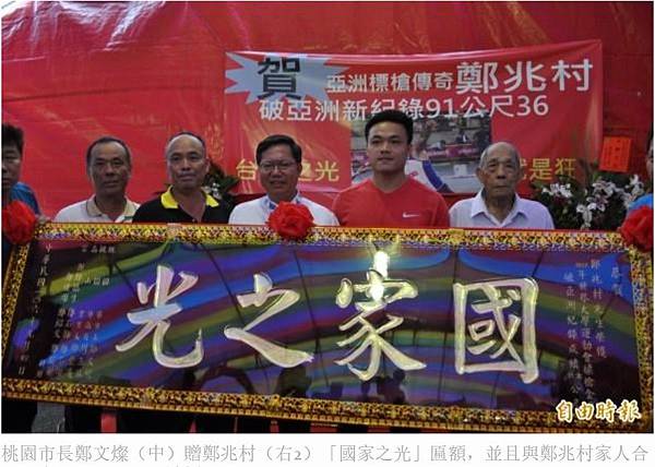 鄭兆村楊梅客家人鄭大模宗族-世大運-男子標槍,於2017年世界大學運動會擲出91.36公尺,成為現任亞洲紀錄保持者,亦為亞洲第一位擲出超過90公尺的運動員,該91.36公尺紀錄使他在世界標槍人物史上排名第12位/超越自己--運動家精神 @ 姜朝鳳宗族 :: 痞客邦 PIXNET :: - https://goo.gl/vGF62w
