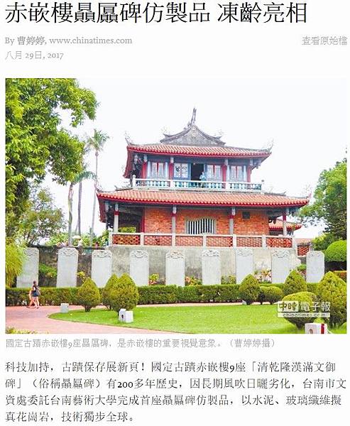 科技加持,古蹟保存展新頁!國定古蹟赤嵌樓9座「清乾隆漢滿文御碑」(俗稱贔屭碑)有200多年歷史,因長期風吹日曬劣化,台南市文資處委託台南藝術大學完成首座贔屭碑仿製品,以水泥、玻璃纖維擬真花崗岩,技術獨步全球。