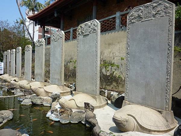 國定古蹟赤嵌樓9座贔屭碑,是赤嵌樓的重要視覺意象。(曹婷婷攝)