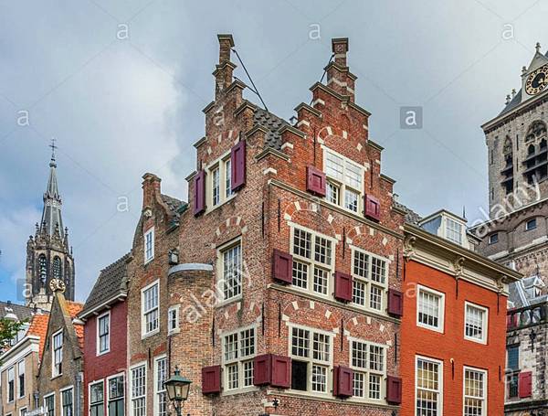 特殊的階梯立面可比較現存荷蘭的古蹟建築 (圖二)。主建物有外牆圍繞,外牆的斜對角有兩座戍衛高堡。比對他圖,兩高堡的比例似乎被縮小 來凸顯出主建物。另外這幅圖畫還描繪了,祀壺的西拉雅族舞蹈等 與 駐軍練武 等。(1) 荷西時期與平埔年代 | Facebook https://bit.ly/2Tr1Q2P