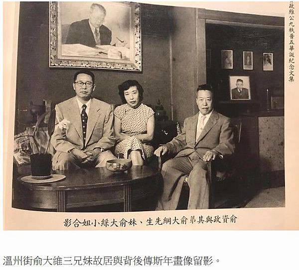 溫州街俞大維三兄妹故居與背後傳斯年畫像留影。