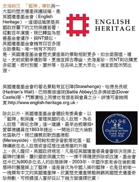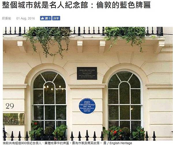 倫敦藍色牌匾因提高了人們的歷史意識,而促成了建築物的成功保存。 圖/Englis...