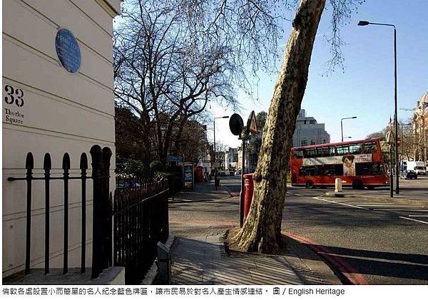 倫敦各處設置小而簡單的名人紀念藍色牌匾,讓市民易於對名人產生情感連結。 圖/En...