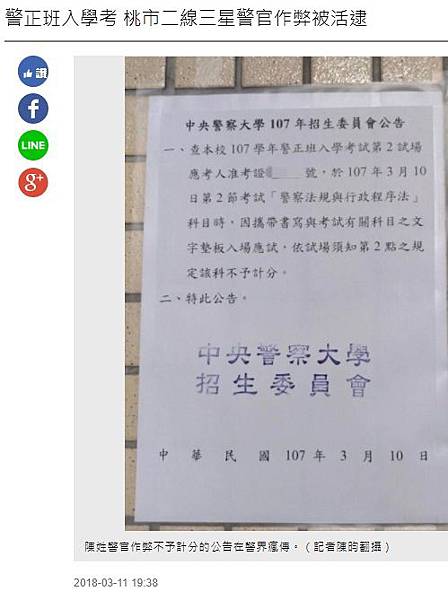 分享警正班入學考 桃市二線三星警官作弊被活逮到Facebook 分享警正班入學考 桃市二線三星警官作弊被活逮到Line 分享警正班入學考 桃市二線三星警官作弊被活逮到Google+