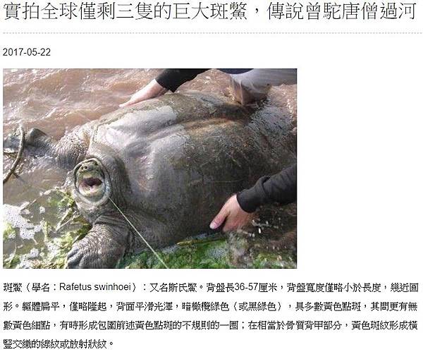 分享在地球生存2億7千萬年卻快滅絕 「斑鱉」全球只剩3隻到Facebook 分享在地球生存2億7千萬年卻快滅絕 「斑鱉」全球只剩3隻到Line 分享在地球生存2億7千萬年卻快滅絕 「斑鱉」全球只剩3隻到Google+