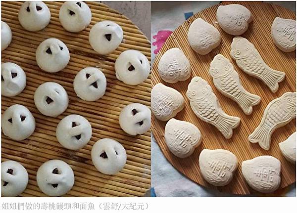 姐姐們做的壽桃饅頭和面魚(雲舒/大紀元)