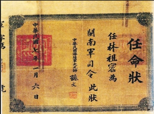 國父任命林祖密(圖)為閩南軍司令。(林光輝提供) 國父任命林祖密為閩南軍司令的任命狀(圖)。(林光輝提供)
