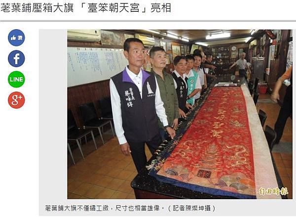 分享荖葉鋪壓箱大旗 「臺笨朝天宮」亮相到Facebook 分享荖葉鋪壓箱大旗 「臺笨朝天宮」亮相到Line 分享荖葉鋪壓箱大旗 「臺笨朝天宮」亮相到Google+