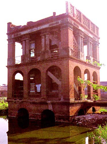 大林庄長江文蔚的豪宅「省園」,如今殘存牆面。(記者謝恩得/攝影)