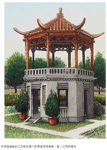 林炳耀繪製的江文蔚古厝八卦亭復原想像圖。圖/江明赫提供