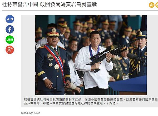 分享杜特蒂警告中國 敢開發南海黃岩島就宣戰到Facebook 分享杜特蒂警告中國 敢開發南海黃岩島就宣戰到Line 分享杜特蒂警告中國 敢開發南海黃岩島就宣戰到Google+