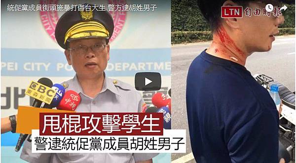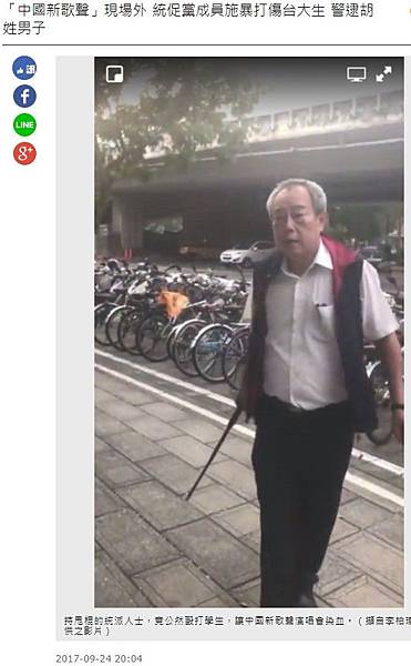 分享「中國新歌聲」現場外 統促黨成員施暴打傷台大生 警逮胡姓男子到Facebook 分享「中國新歌聲」現場外 統促黨成員施暴打傷台大生 警逮胡姓男子到Line 分享「中國新歌聲」現場外 統促黨成員施暴打傷台大生 警逮胡姓男子到Google+