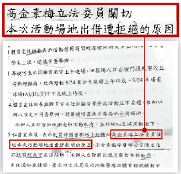 5. 校方應承諾往後不於平日上課期間出借場地,影響學生上課、使用權利;同時檢討校內行政流程,未來大型活動皆應配合學校大型活動場地租借流程重新審議,避免類似事件再次發生
