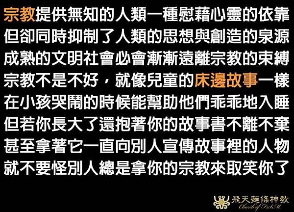 飛天麵條神教有多有趣的地方,例如說祂認為: