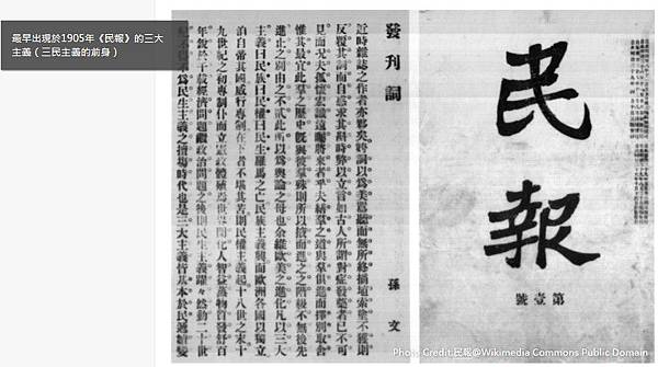 Photo Credit:民報@Wikimedia Commons Public Domain最早出現於1905年《民報》的三大主義(三民主義的前身)