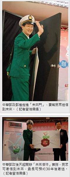 中華郵政郵務處處長李甘祥表示,高雄已先行試辦這項業務,明天起在全台廿三處「九○一」支局(五都升格前各縣市總局)開辦。未來信指定寄送日期最短十五天、最長三十年,可寄掛號信件或包裹。