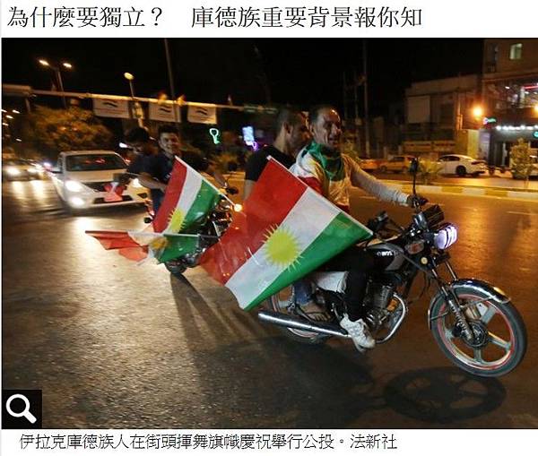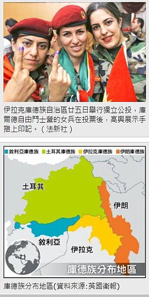 -伊拉克庫德族人是美國重要盟友,長期在伊拉克對抗海珊政權,而海珊垮台後,更是聯軍對抗IS的主力。