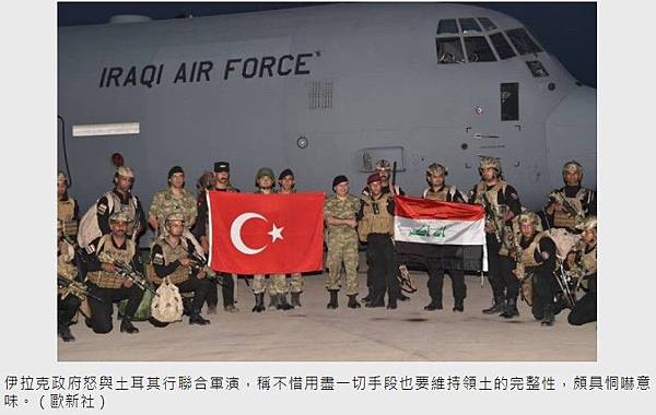 伊拉克政府怒與土耳其行聯合軍演,稱不惜用盡一切手段也要維持領土的完整性,頗具恫嚇意味。(歐新社)