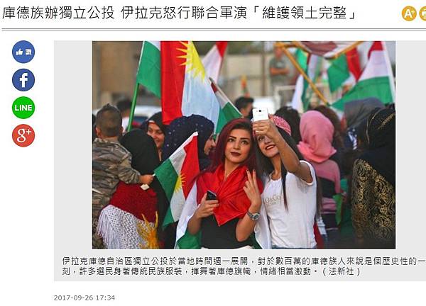 分享伊拉克庫德族925獨立公投到Facebook 分享伊拉克庫德族925獨立公投到Line 分享伊拉克庫德族925獨立公投到Google+