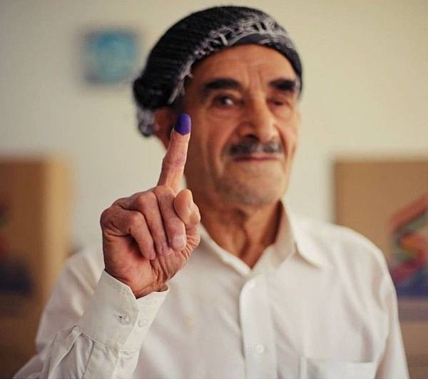 對參與歷史性公投感到滿意的庫德長者。 圖/路透社
